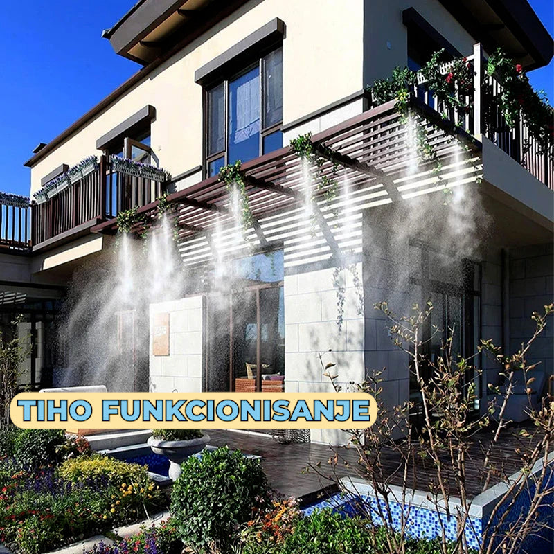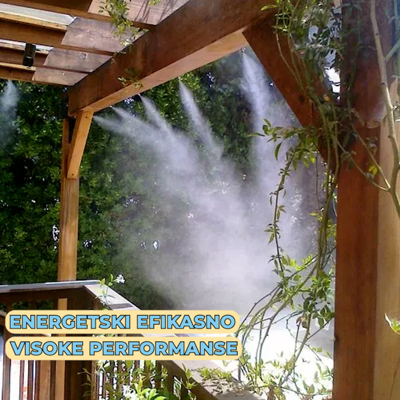 ✅Efikasno hlađenje: Naš sistem koristi finu vodenu maglu koja brzo isparava, smanjujući temperaturu vazduha i stvarajući prijatno osvežavajuće okruženje.